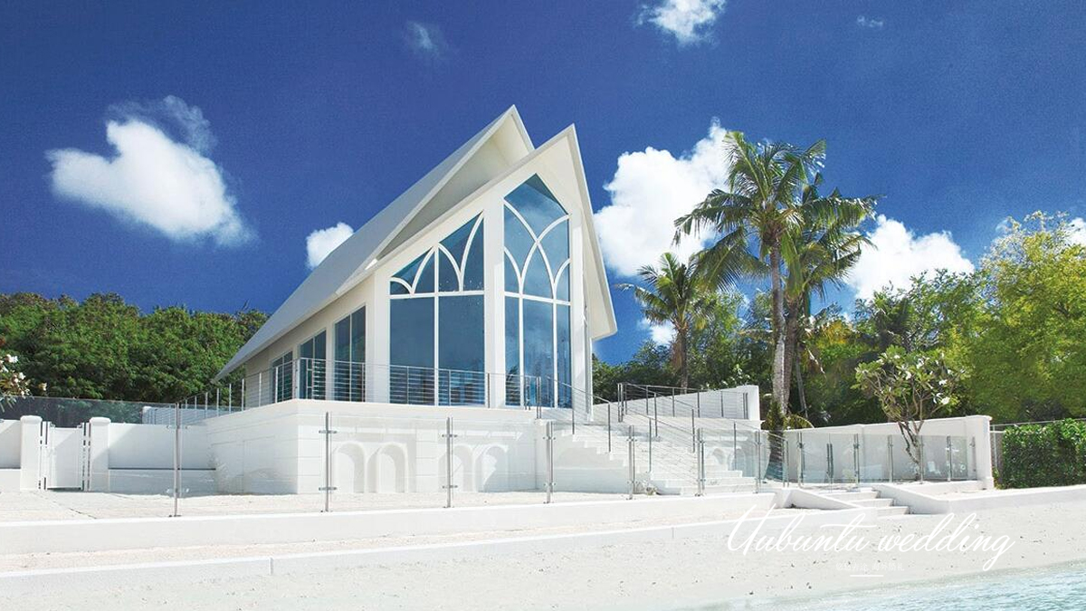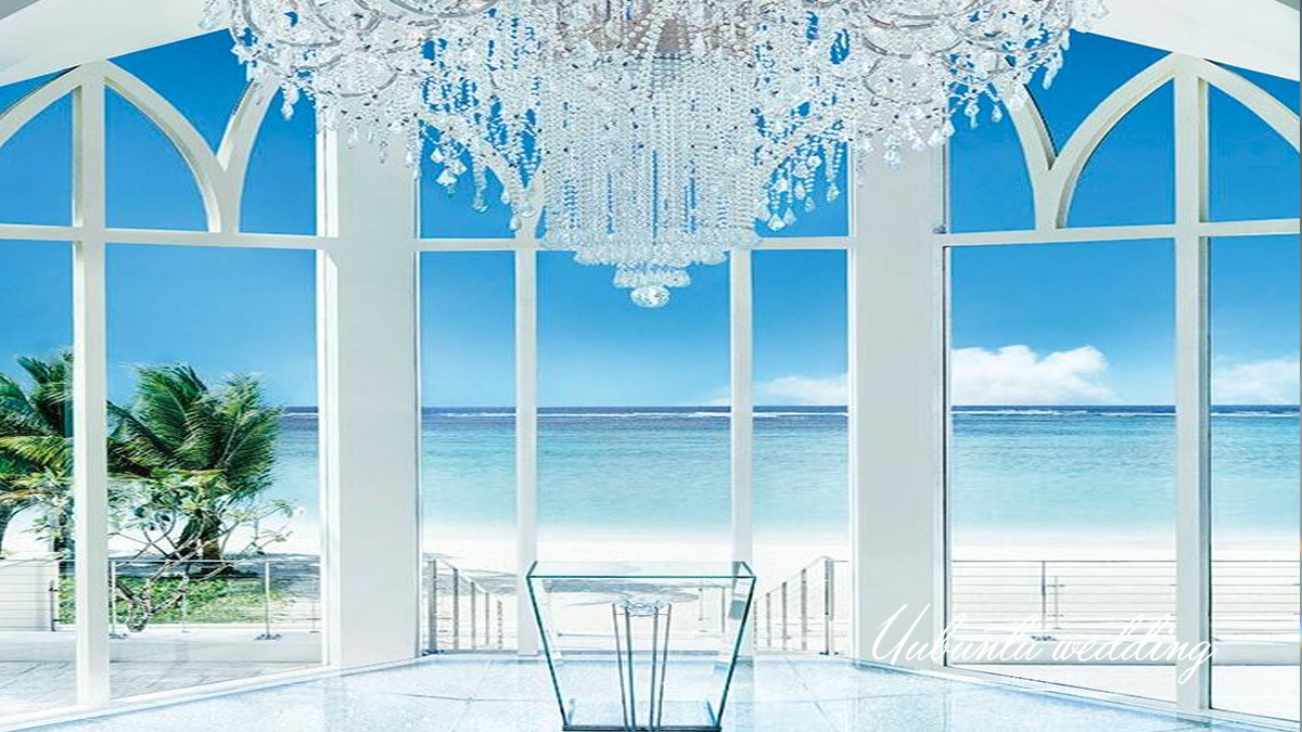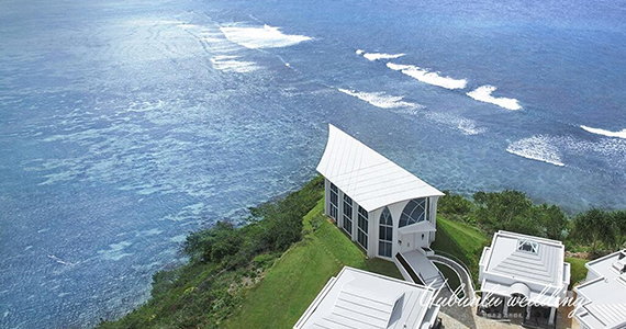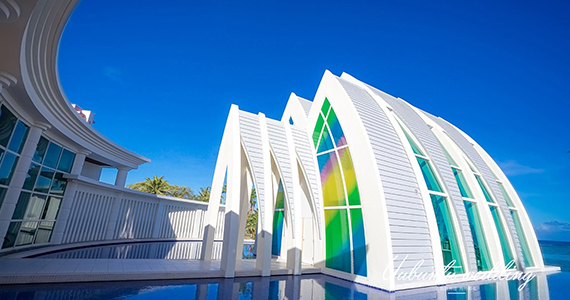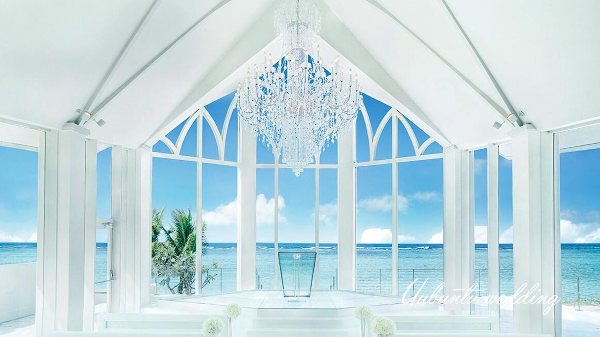 璀璨教堂被誉为关岛最美丽的教堂,它犹如太平洋岸边盛满宝石 的盒子,闪耀着璀璨夺目的宝石般光泽。教堂位于杜梦湾中心位置的凯悦酒店内,不 同于其他建于山丘或悬崖之上的海景教堂,它紧挨海边的沙滩,享受着海水的轻抚,聆听着海浪的欢 歌,犹如被大海冲刷出的一块稀世瑰宝。教堂内圣洁的白色与水晶的吊灯完美地诠释了浪漫婚礼, 圣台前与爱人携手远眺太平洋遥远的海天一线,在宝石般光泽的照耀下深情凝视,许下一生的无悔誓言。